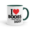 I Love boobs ...just like my daddy, Mug colored green, ceramic, 330ml