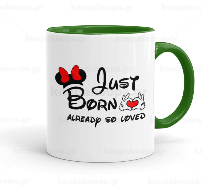 Just born already so loved, Mug colored green, ceramic, 330ml
