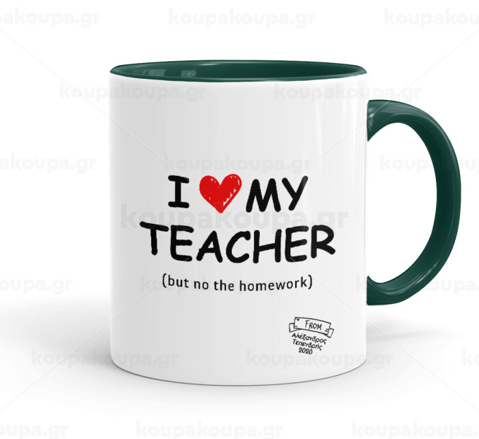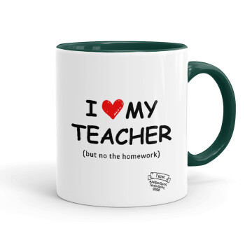 i love my teacher but no the homework, Mug colored green, ceramic, 330ml