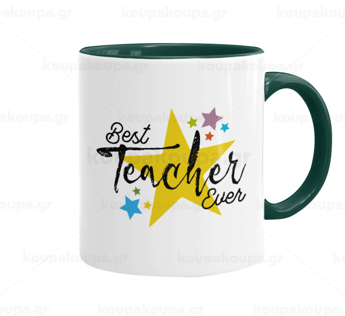 Teacher super star!!!, Mug colored green, ceramic, 330ml