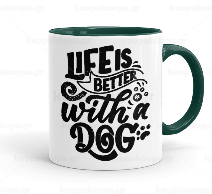 Life is better with a DOG, Mug colored green, ceramic, 330ml