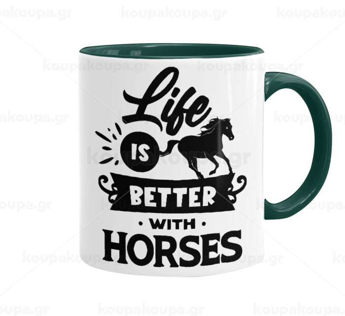 Life is Better with a Horses, Mug colored green, ceramic, 330ml