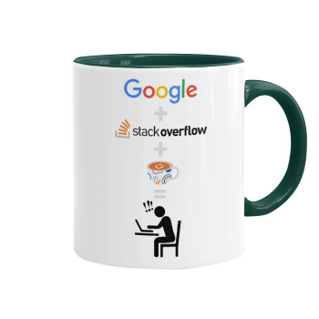Google + Stack overflow + Coffee, Mug colored green, ceramic, 330ml