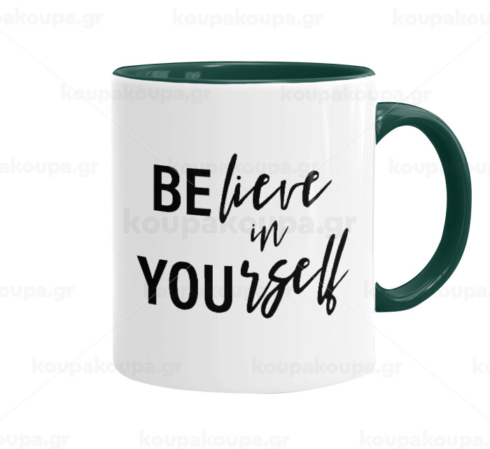 Believe in your self, Mug colored green, ceramic, 330ml