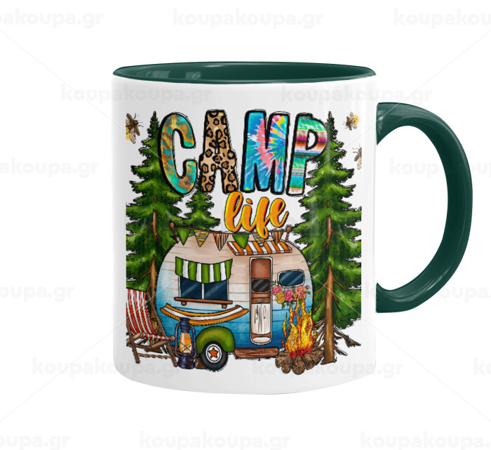 Camp Life, Mug colored green, ceramic, 330ml
