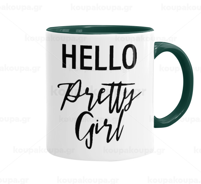 Hello pretty girl, Mug colored green, ceramic, 330ml