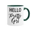 Hello pretty girl, Mug colored green, ceramic, 330ml