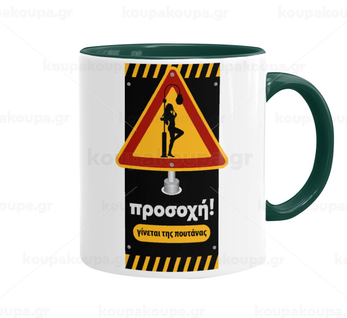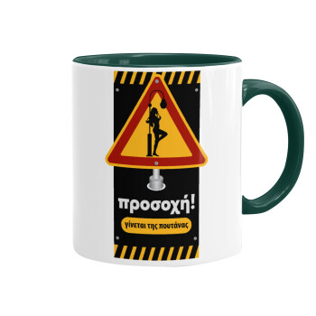 Προσοχή Γίνεται της πουτ.νας, Mug colored green, ceramic, 330ml