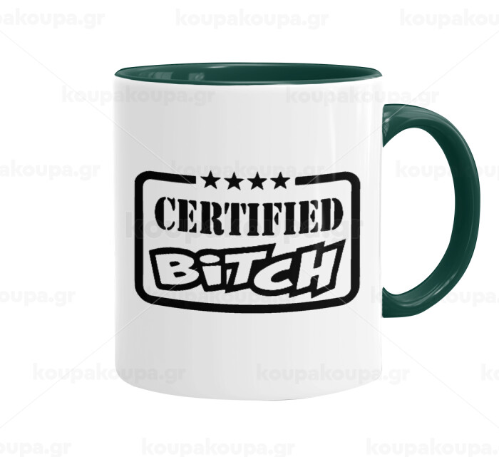 Certified Bitch, Mug colored green, ceramic, 330ml