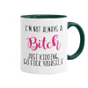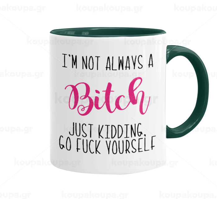 I'm not always a bitch, just kidding go f..k yourself , Mug colored green, ceramic, 330ml