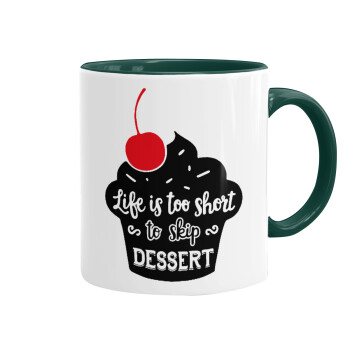 Life is too short, to skip Dessert, Mug colored green, ceramic, 330ml