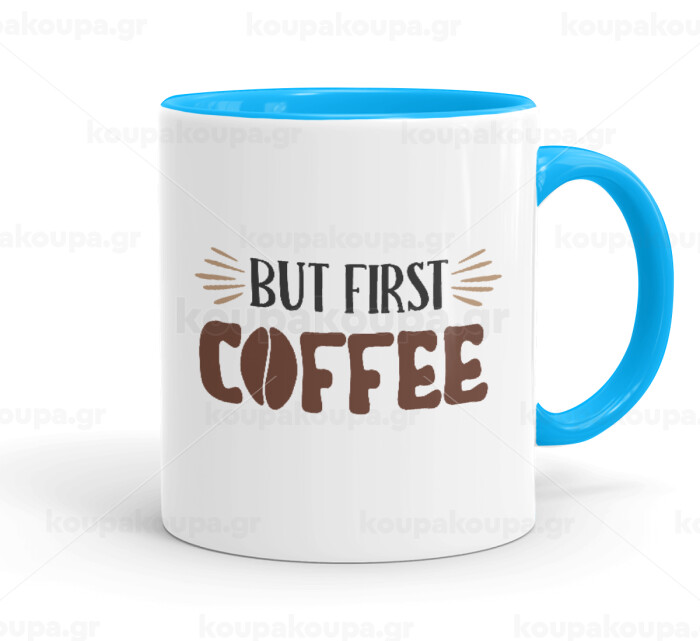 But first Coffee, Mug colored light blue, ceramic, 330ml