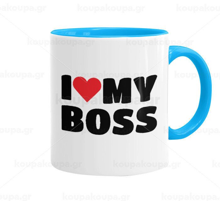 I LOVE MY BOSS, Mug colored light blue, ceramic, 330ml