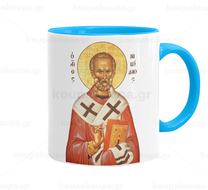 Saint Nicholas orthodox , Mug colored light blue, ceramic, 330ml