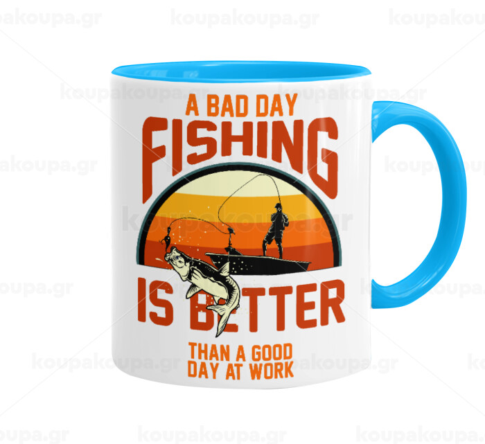 A bad day FISHING is better than a good day at work, Mug colored light blue, ceramic, 330ml