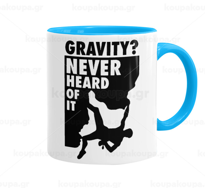 Gravity? Never heard of that!, Mug colored light blue, ceramic, 330ml