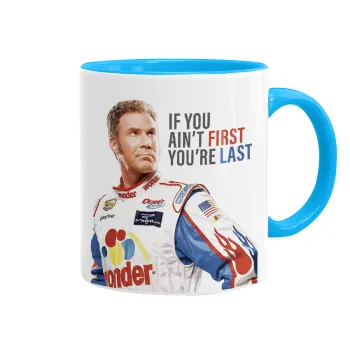 If You Ain't First You're Last Ricky Bobby, Talladega Nights, Mug colored light blue, ceramic, 330ml