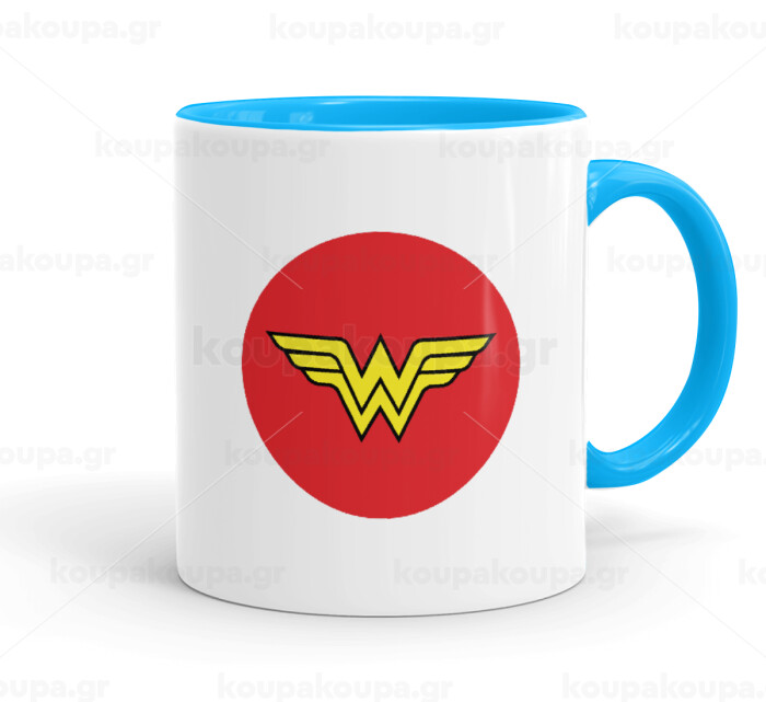 Wonder woman, Mug colored light blue, ceramic, 330ml