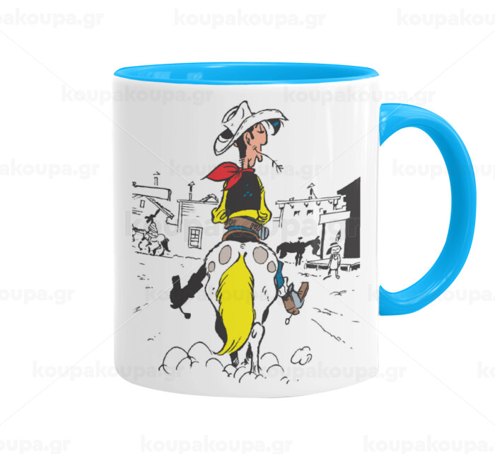 Lucky Luke comic, Mug colored light blue, ceramic, 330ml