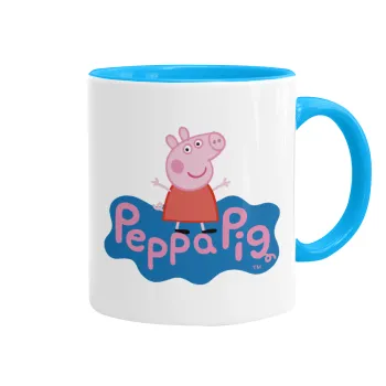 Πέππα το γουρουνάκι μπλε με όνομα, Mug colored light blue, ceramic, 330ml