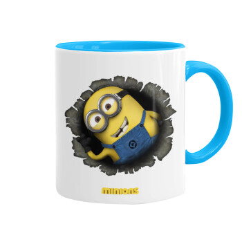 Minions hi, Mug colored light blue, ceramic, 330ml