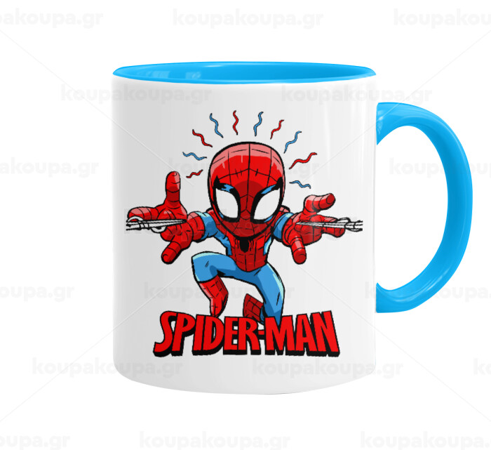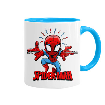 Spiderman flying, Mug colored light blue, ceramic, 330ml