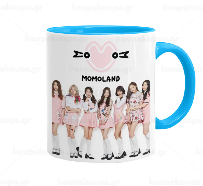 Momoland pink, Mug colored light blue, ceramic, 330ml
