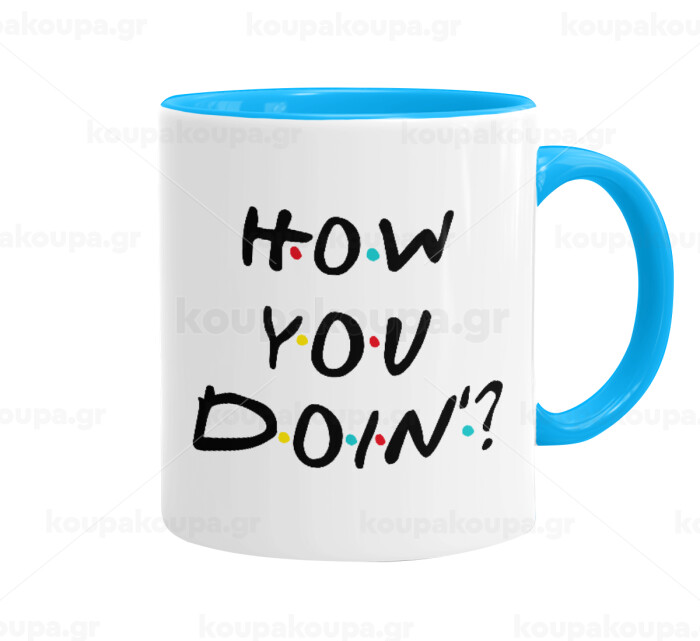 Friends How You Doin'?, Mug colored light blue, ceramic, 330ml