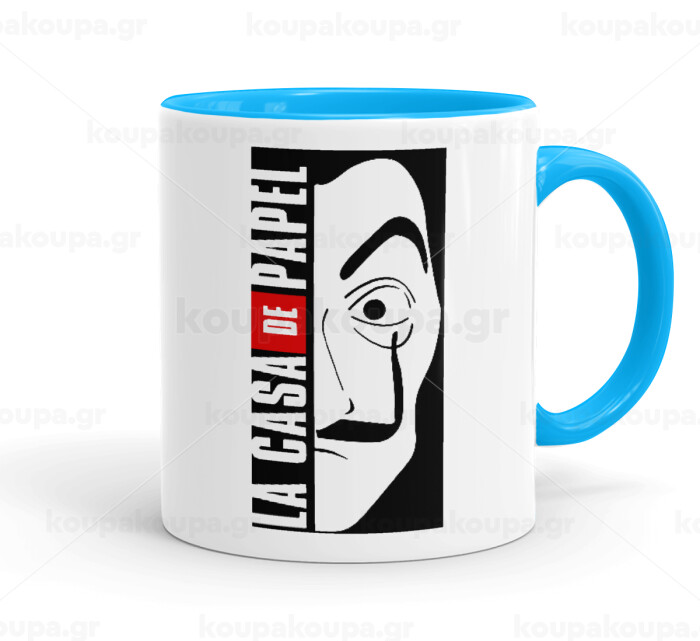 La casa de papel vertical, Mug colored light blue, ceramic, 330ml