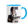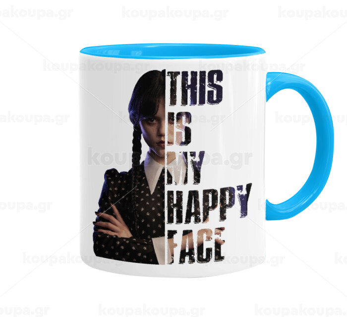 Wednesday, This is my happy face, Mug colored light blue, ceramic, 330ml