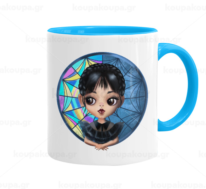 Wednesday big eyes, Mug colored light blue, ceramic, 330ml