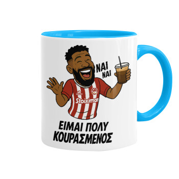 Ροντινέι, "ΠΟΛΥ ΚΟΥΡΑΣΜΕΝΟΣ", Mug colored light blue, ceramic, 330ml
