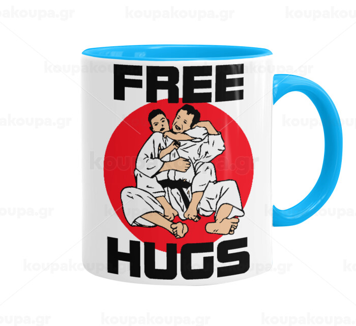 JUDO free hugs, Mug colored light blue, ceramic, 330ml