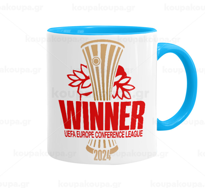 Europa Conference League WINNER, Mug colored light blue, ceramic, 330ml