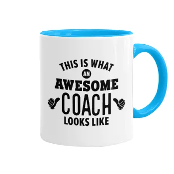 This is what an awesome COACH looks like!, Mug colored light blue, ceramic, 330ml