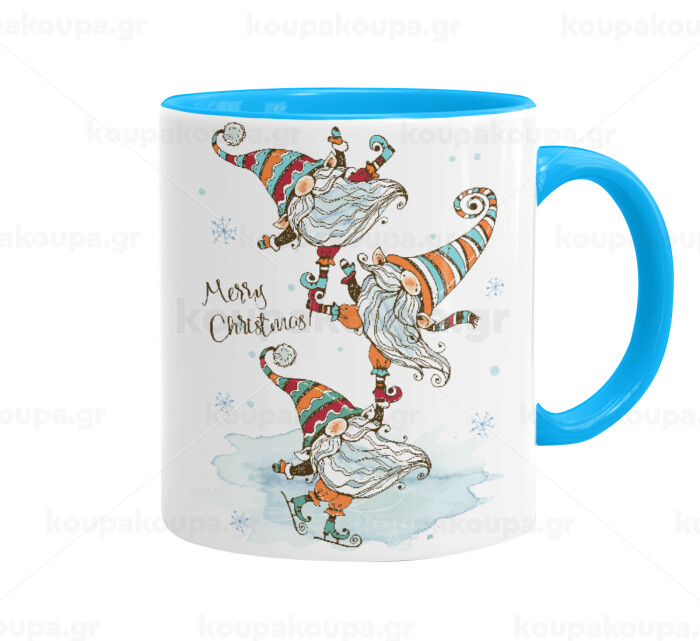 Christmas nordic gnomes, Mug colored light blue, ceramic, 330ml