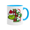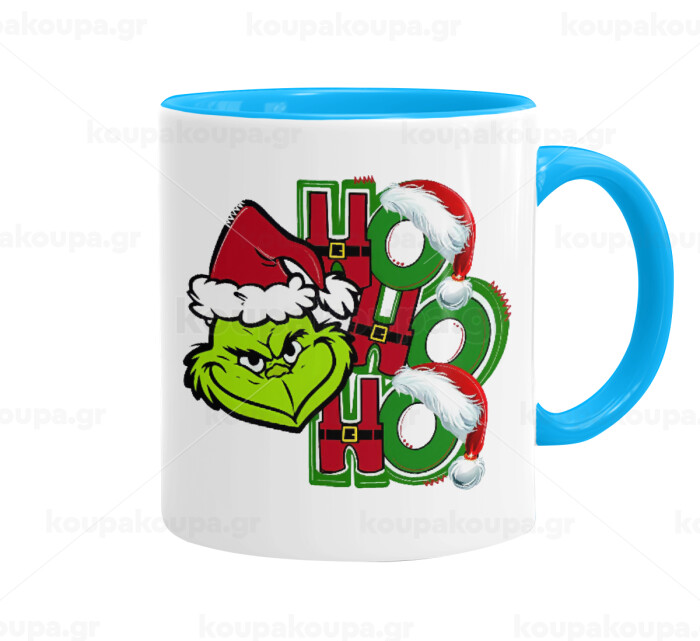 Grinch ho ho ho, Mug colored light blue, ceramic, 330ml