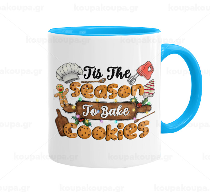 Tis The Season To Bake Cookies, Mug colored light blue, ceramic, 330ml