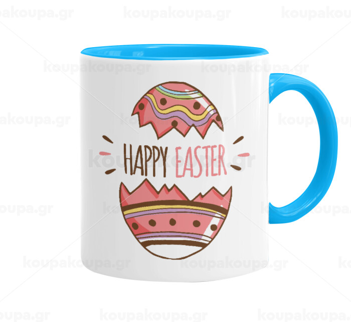 Happy easter egg, Mug colored light blue, ceramic, 330ml