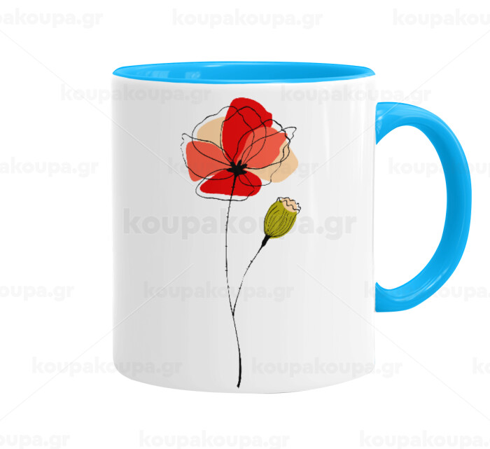 Red poppy flowers papaver, Mug colored light blue, ceramic, 330ml