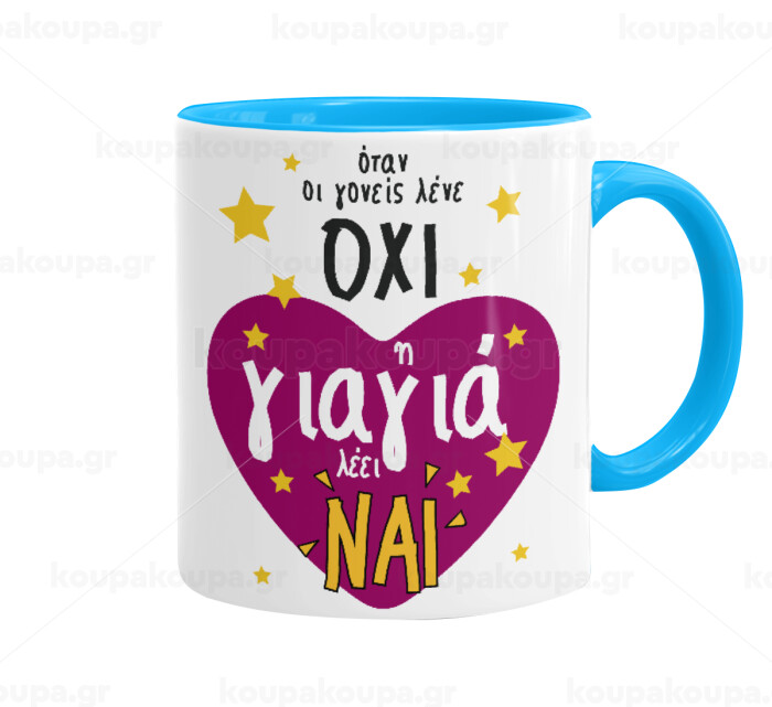 Όταν οι γονείς λένε ΟΧΙ, η γιαγιά λέει ΝΑΙ, Mug colored light blue, ceramic, 330ml