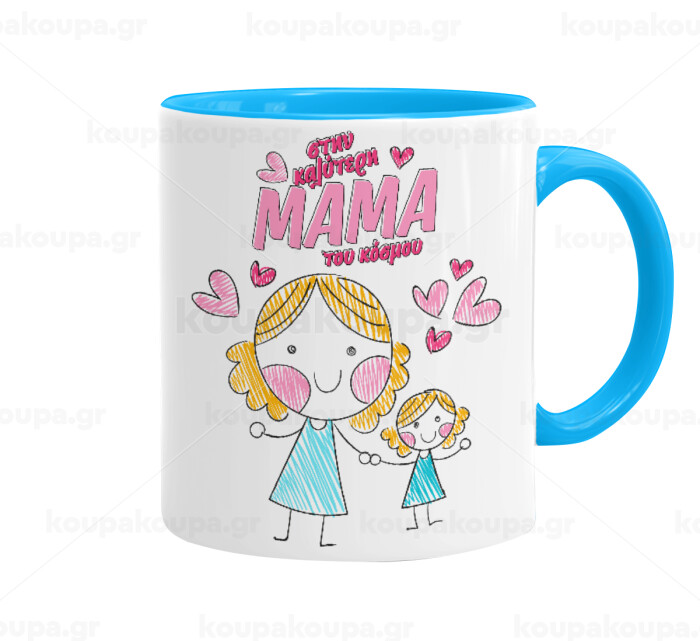 Στην καλύτερη μαμά του κόσμου, comic, Mug colored light blue, ceramic, 330ml