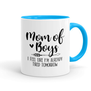Mom of boys i feel like im already tired tomorrow, Mug colored light blue, ceramic, 330ml