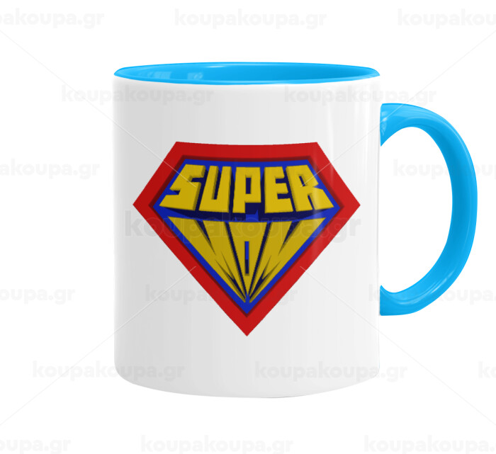 Super Mom 3D, Mug colored light blue, ceramic, 330ml
