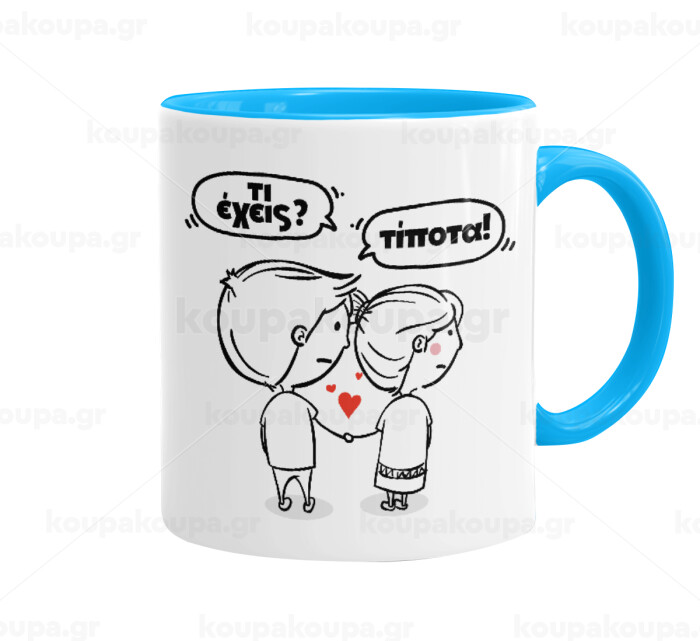 Τι έχεις? Τίποτα!, Mug colored light blue, ceramic, 330ml