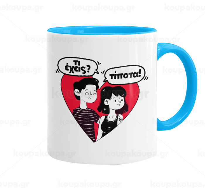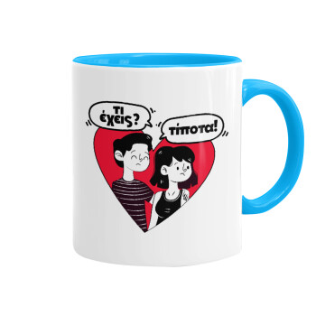 Τι έχεις? Τίποτα!, Mug colored light blue, ceramic, 330ml