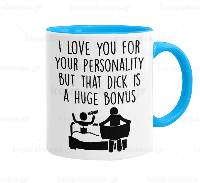 I Love You for Your Personality But that D... Is a Huge Bonus , Mug colored light blue, ceramic, 330ml