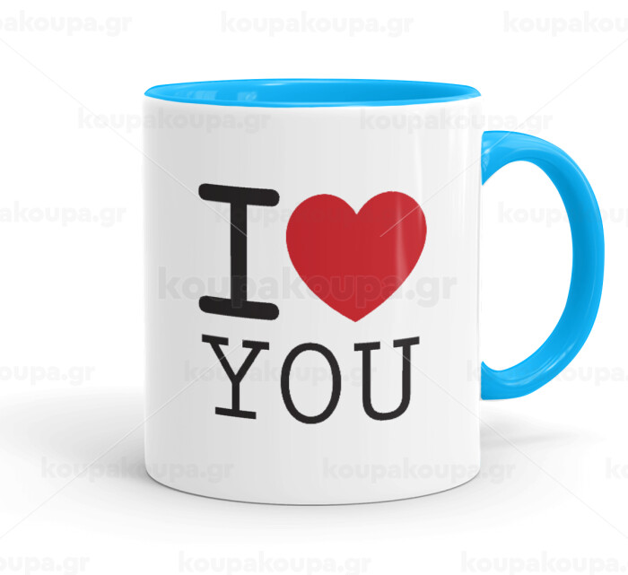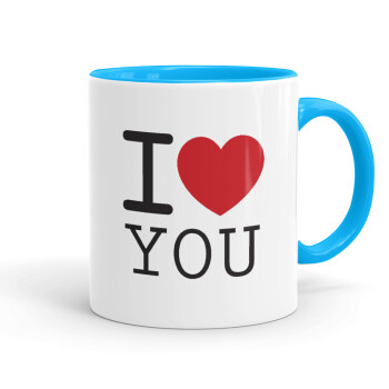 I Love you classic, Mug colored light blue, ceramic, 330ml