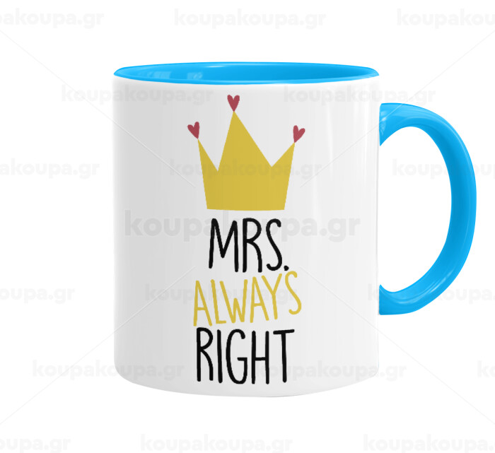 Mrs "Always" right, Mug colored light blue, ceramic, 330ml