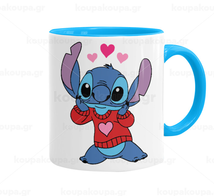 Stitch heart, Mug colored light blue, ceramic, 330ml